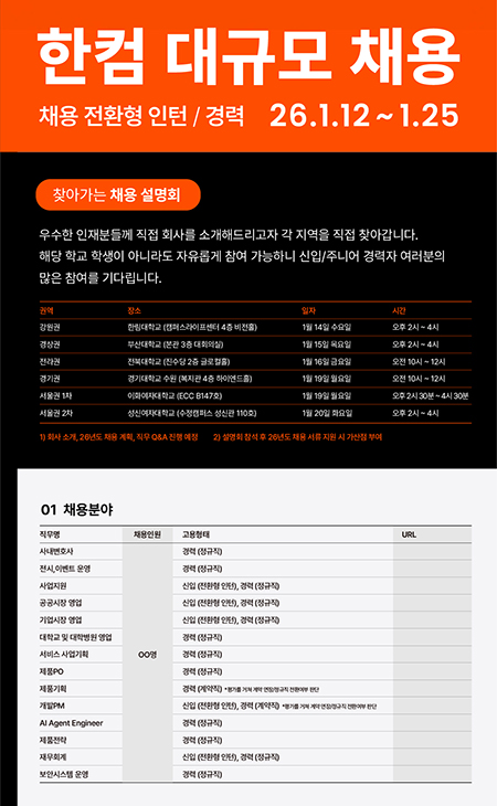 - 한림대, 한글과컴퓨터(HANCOM) 채용설명회 유치…“참석자 서류전형 가점 혜택”